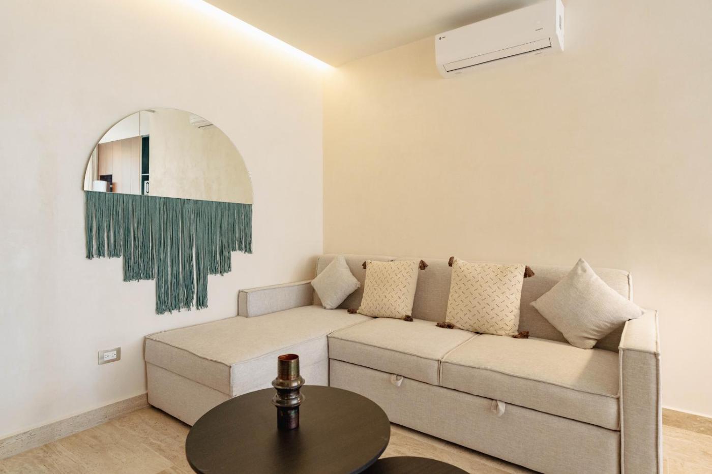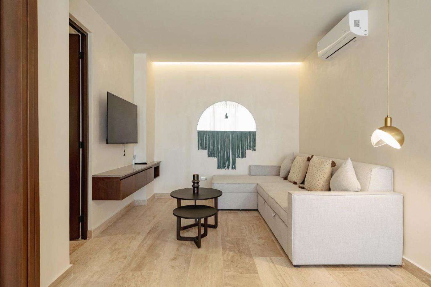 Situated in Tulum in the Quintana Roo region, Boho Breeze Getaway has a terrace. This apartment provides accommodation with a balcony. The apartment features an outdoor swimming pool, fitness room and a lift. Accommodation for disabled guests is also available at the property.